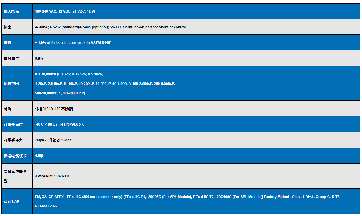 VISCOpro2000 在線粘度計規(guī)格參數(shù)