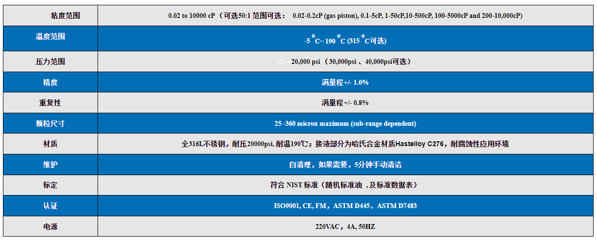 粘度計(VISCOlab PVT+ 高溫高壓粘度計)規格參數: